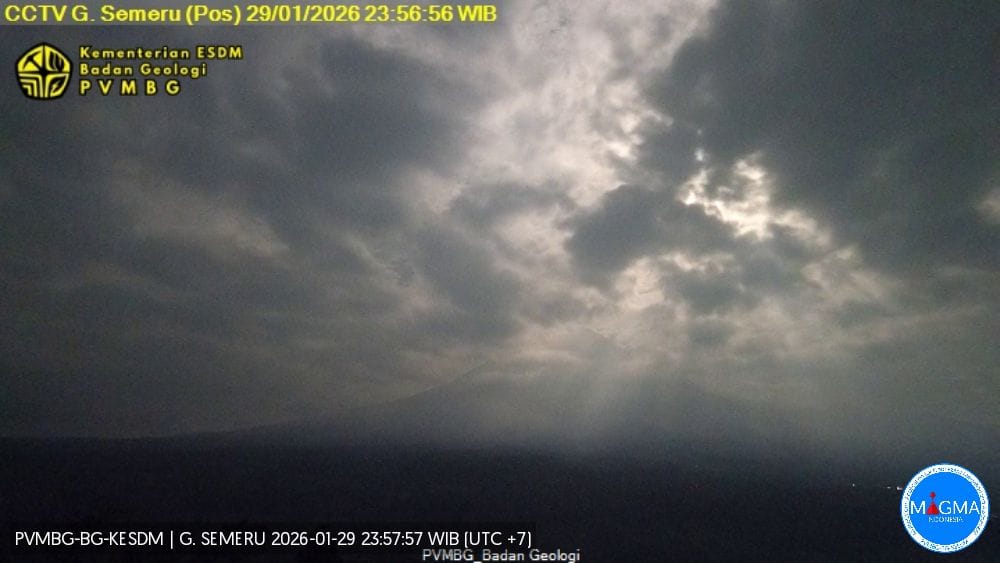 Pengamat Gunung Semeru dari Badan Geologi, Mukdas Sofian, menyampaikan bahwa pengamatan dilakukan pada Kamis, 29 Januari 2026, pukul 18.00 hingga 24.00 WIB. Gunung Semeru yang memiliki ketinggian 3.676 meter di atas permukaan laut itu secara visual dominan tertutup kabut.