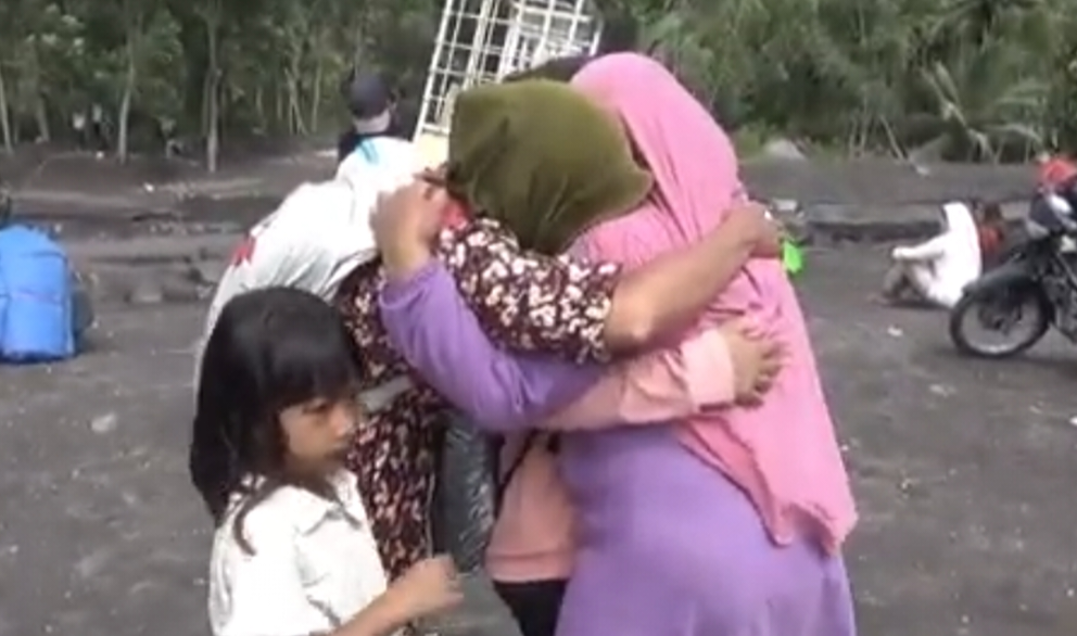 Warga yang masih bertahan di bukit memeluk satu per satu keluarga mereka yang akhirnya memilih mengungsi. Tangis pecah ketika Aminah bersama anaknya menuruni bukit menuju posko. Seorang anggota keluarga bahkan memberi pesan kepada sang anak. “Jangan nakal ya di pengungsian. Kita nanti kumpul lagi di Sumberlangsep,” kata Rukmini menahan tangis.