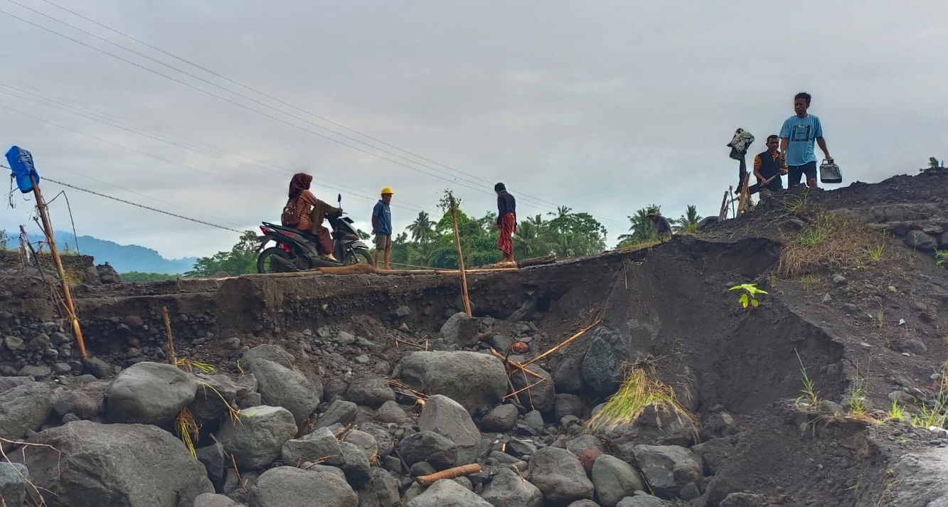 Lumajang, – Banjir lahar hujan dari Gunung Semeru kembali memutus akses vital warga. Kali ini, luapan lahar menerjang aliran Sungai Regoyo dan merusak jalan utama yang menghubungkan Kecamatan Pasirian dan Kecamatan Tempursari, Kabupaten Lumajang.