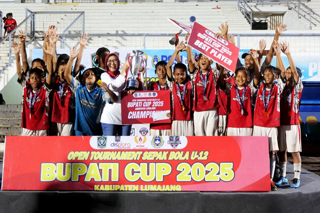 Lumajang – Turnamen Sepak Bola U-12 Bupati Cup 2025 yang digelar di Stadion Semeru, Lumajang, pada Minggu (12/10/2025), menjadi momentum penting bagi pembinaan atlet muda sekaligus penguatan eksistensi olahraga di kawasan Tapal Kuda.