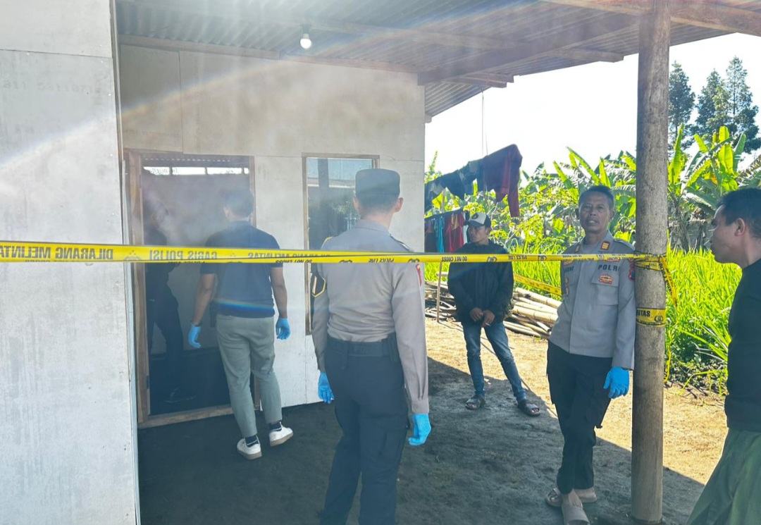 Di lokasi kejadian, ditemukan sejumlah barang yang dinilai mencurigakan, di antaranya seutas tali karet ban luar, kabel berwarna merah, selendang bayi yang terikat pada bagian rumah, serta sebilah pisau di sekitar korban.