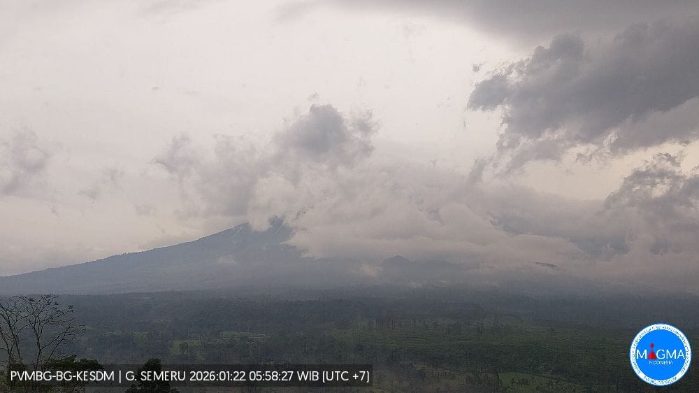 Lumajang, – Pengamatan aktivitas Gunung Semeru pada 21 Januari 2026 mencatat sebanyak 30 kali letusan dengan amplitudo 12–22 mm dan durasi 65–165 detik.