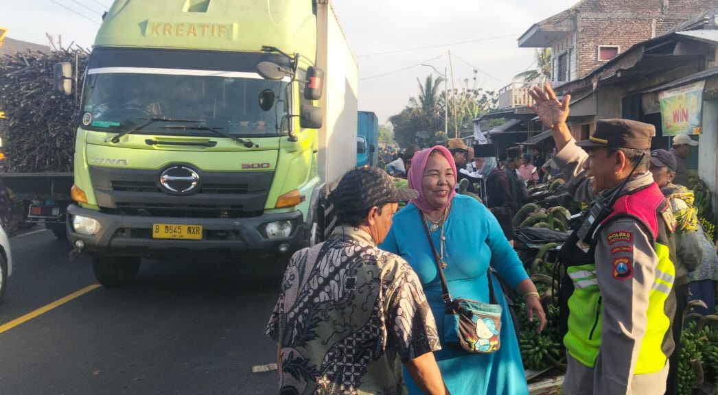 Pasar Gedang, yang berada di jalur utama penghubung Lumajang-Probolinggo, menjadi salah satu titik fokus pengaturan lalu lintas.