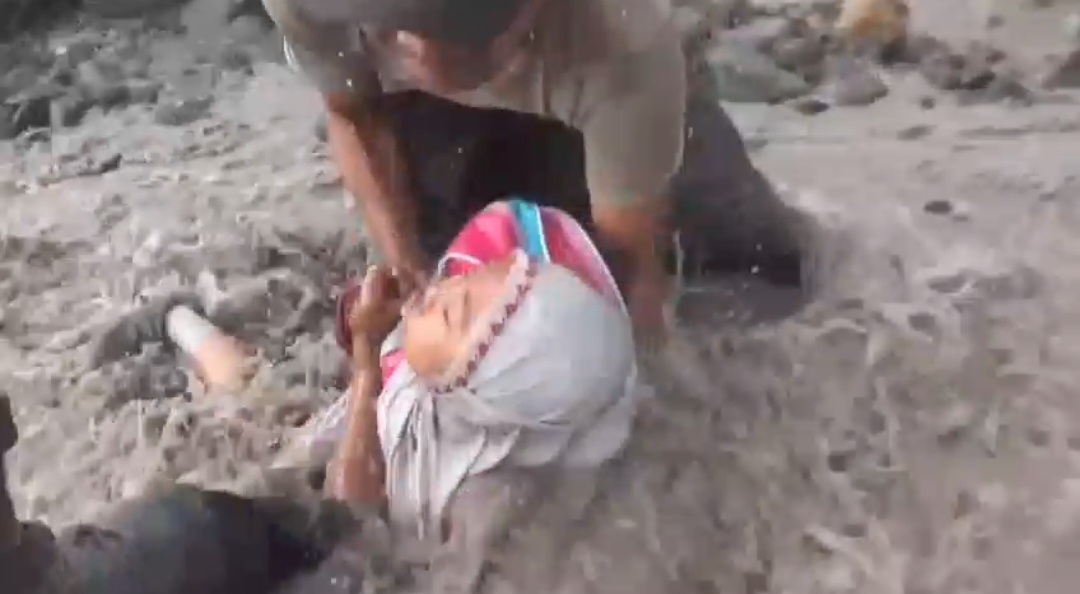 Material vulkanik bercampur lumpur pekat menghantam tepian sungai, membahayakan siapa pun yang mencoba menyeberang.