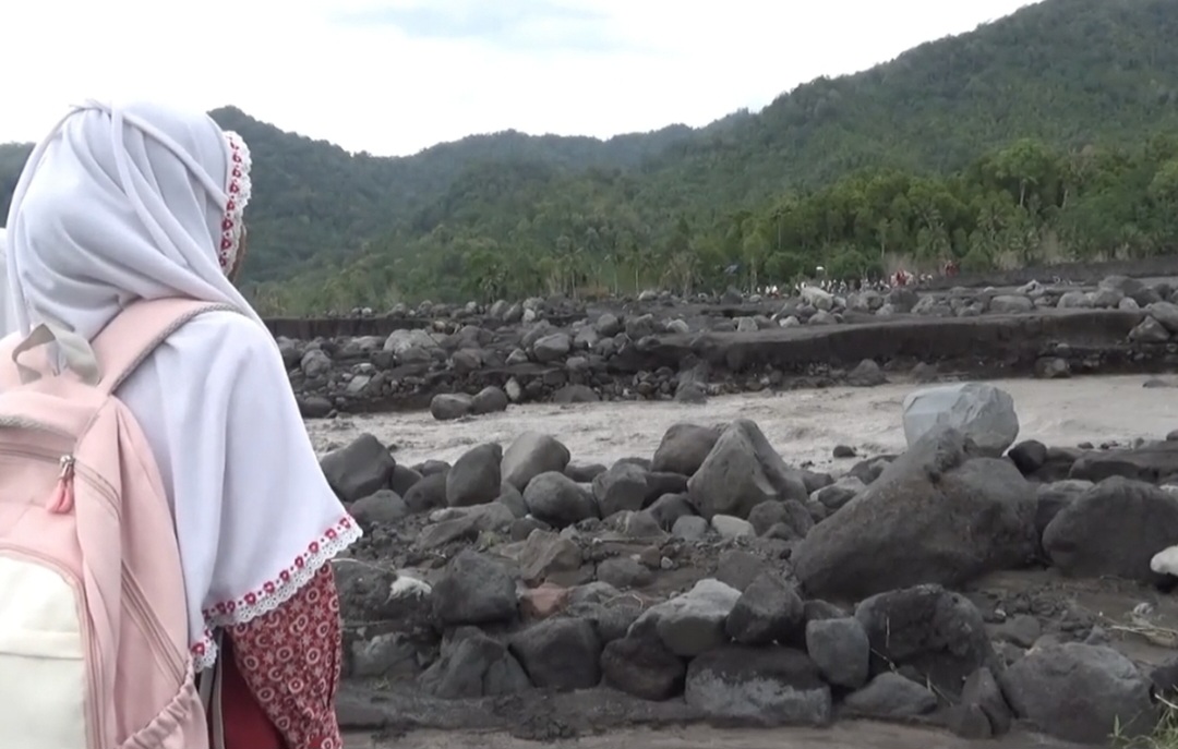 Namun, saat hendak menyeberangi sungai, para siswa memilih balik kanandan pulang ke rumah karena khawatir terseret arus lahar yang masih deras. Dari puluhan siswa yang berangkat, hanya dua anak yang berhasil menyeberang dengan cara digendong orang tuanya.